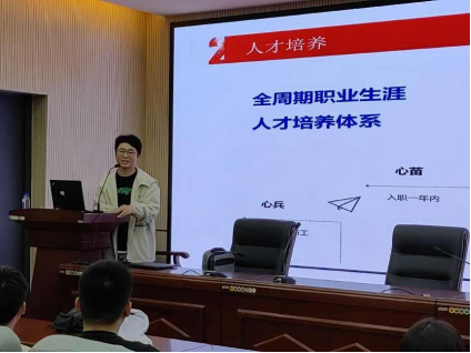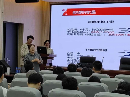 企业管理部经理张玺,针对同学们感兴趣的问题,尤其是合同签订的相关事宜、资薪和职员晋升的前景等方面,进行了补充说明,并就同学们提出的一些实际性的问题,进行了耐心解答,现场气氛活跃。